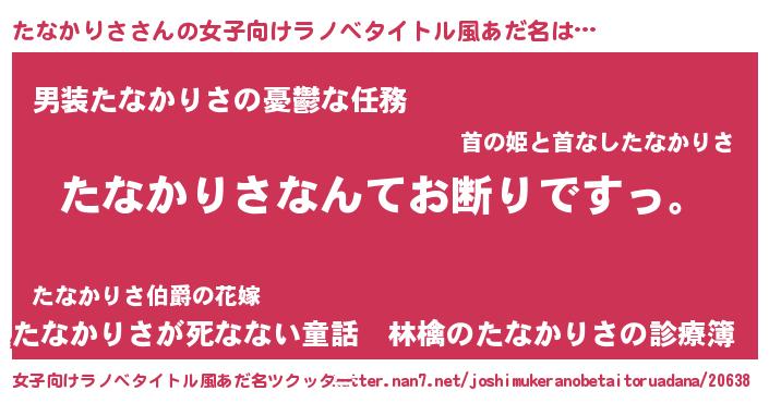 | 男性向けラノベタイトル風あだ名 | 『魔法科高校のたなかりさ』 |