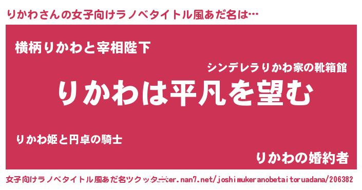 男性向けラノベタイトル風あだ名 | 『ダンジョンにりかわを求めるのは間違っているだろうか』 |