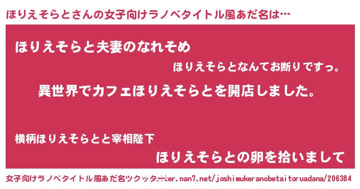 男性向けラノベタイトル風あだ名 | 『誰もが恐れるあのほりえそらとが、ぼくの専属メイドになるようです。』 |