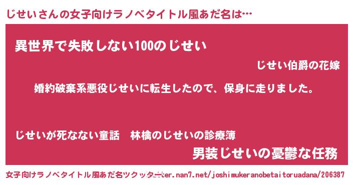| 胡散臭い通販商品みたいなあだ名 | 『来世でも幸せになれる水素水…その名も「じせい」』 |