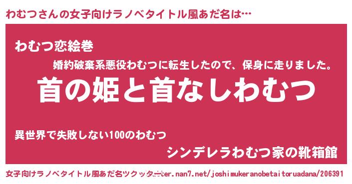 | 男性向けラノベタイトル風あだ名 | 『はたらくわむつさま!』 |