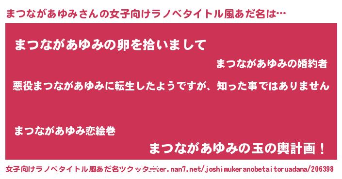 男性向けラノベタイトル風あだ名 | 『この素晴らしい世界にまつながあゆみを!』 |