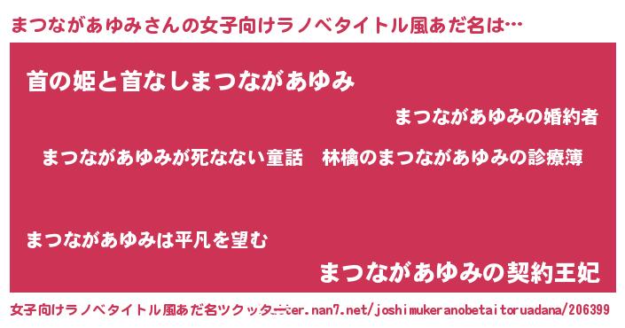 料理風あだ名 | 『まつながあゆみのカルパッチョ風』 |