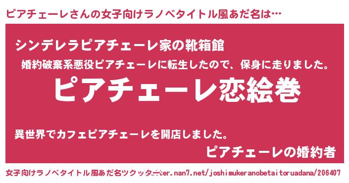 男性向けラノベタイトル風あだ名 | 『ノーゲーム・ノーピアチェーレ』 |