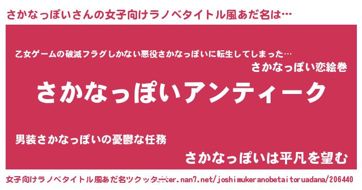 | 男性向けラノベタイトル風あだ名 | 『魔法科高校のさかなっぽい』 |