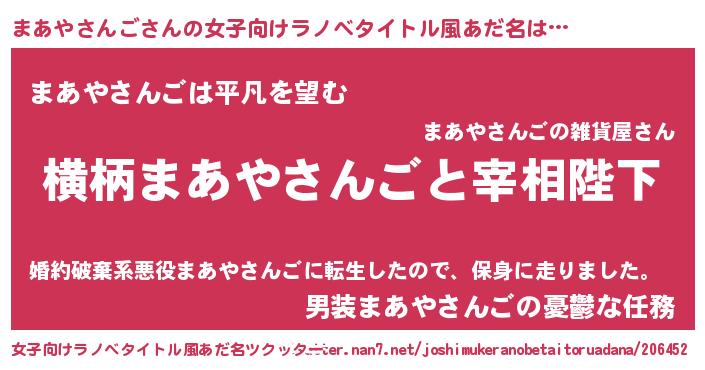 | 胡散臭い通販商品みたいなあだ名 | 『全米が絶賛したサプリメント…その名も「まあやさんご」』 |