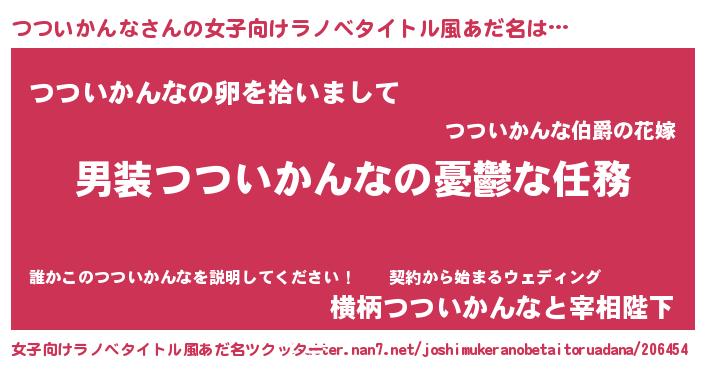 | 男性向けラノベタイトル風あだ名 | 『うちのつついかんなが世界を掌握している!』 |