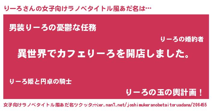 | ヘコむあだ名 | 『りーろ(爆)』『酢こんぶ』 |