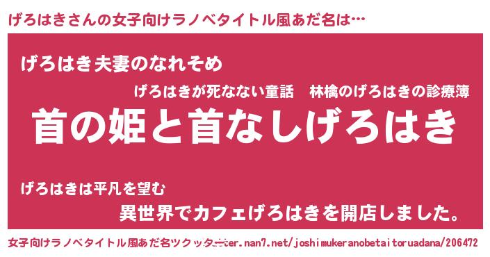 | 男性向けラノベタイトル風あだ名 | 『はたらくげろはきさま!』 |