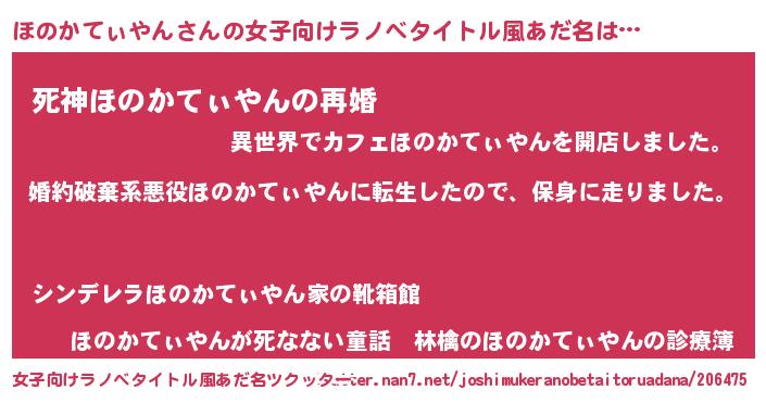| 男性向けラノベタイトル風あだ名 | 『転生したらほのかてぃやんだった件』 |