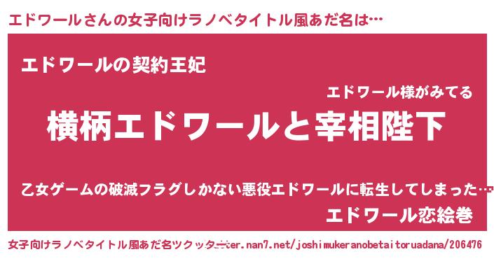 | 男性向けラノベタイトル風あだ名 | 『エドワールに滅ぼされるだけの簡単なお仕事です』 |