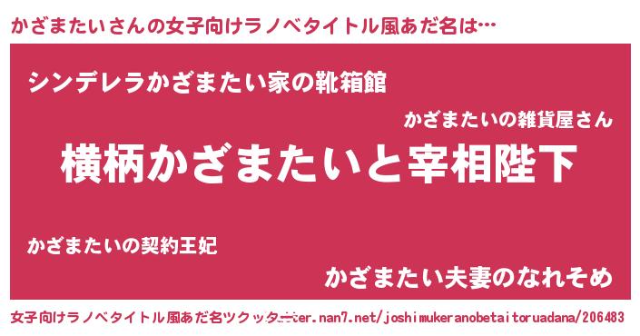 | 男性向けラノベタイトル風あだ名 | 『かざまたいに滅ぼされるだけの簡単なお仕事です』 |