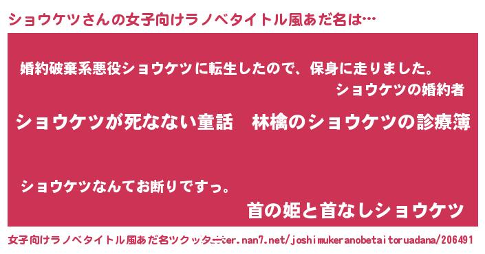 | 意味不明あだ名 | 『住所不定無職ショウケツ(89歳)』 |