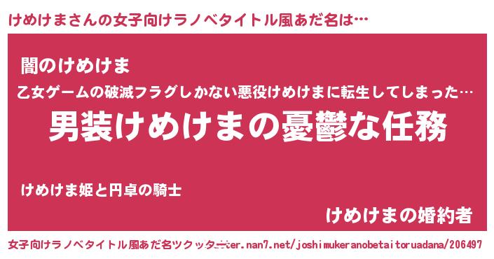 | 男性向けラノベタイトル風あだ名 | 『うちのけめけまが世界を掌握している!』 |