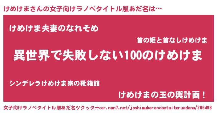 | 男性向けラノベタイトル風あだ名 | 『けめけまという概念が存在しない退屈な世界 』 |