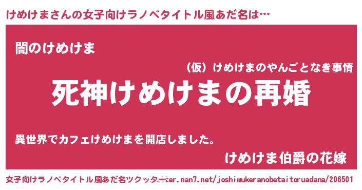 | 男性向けラノベタイトル風あだ名 | 『ノーゲーム・ノーケメケマ』 |