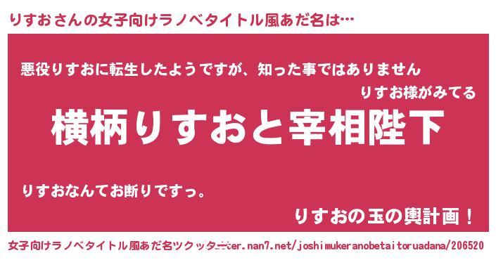 | ヘコむあだ名 | 『りすぷりん』『りすお(小並感)』 |