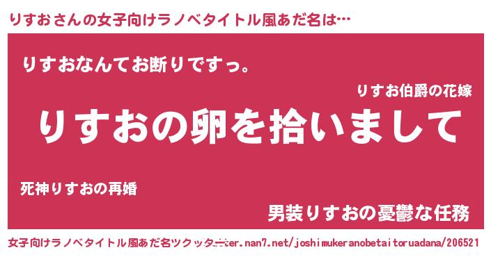 | 男性向けラノベタイトル風あだ名 | 『ダンジョンにりすおを求めるのは間違っているだろうか』 |