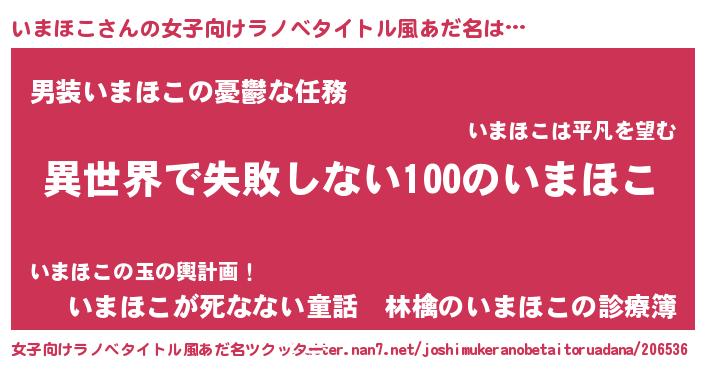 | 男性向けラノベタイトル風あだ名 | 『いまほこという概念が存在しない退屈な世界 』 |