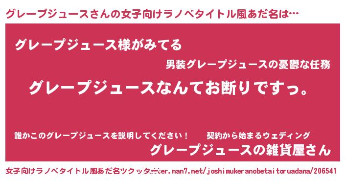 | 男性向けラノベタイトル風あだ名 | 『魔法科高校のグレープジュース』 |