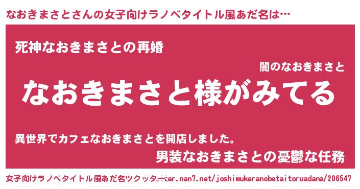 | ヘコむあだ名 | 『なおお』『なおきまさと(笑)』 |