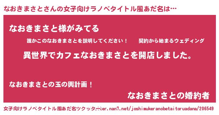 | 男性向けラノベタイトル風あだ名 | 『誰もが恐れるあのなおきまさとが、ぼくの専属メイドになるようです。』 |