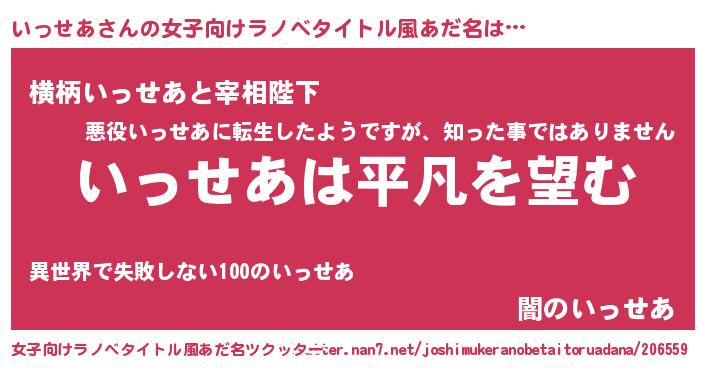 | 胡散臭い通販商品みたいなあだ名 | 『信頼と実績のペンダント…その名も「いっせあ」』 |