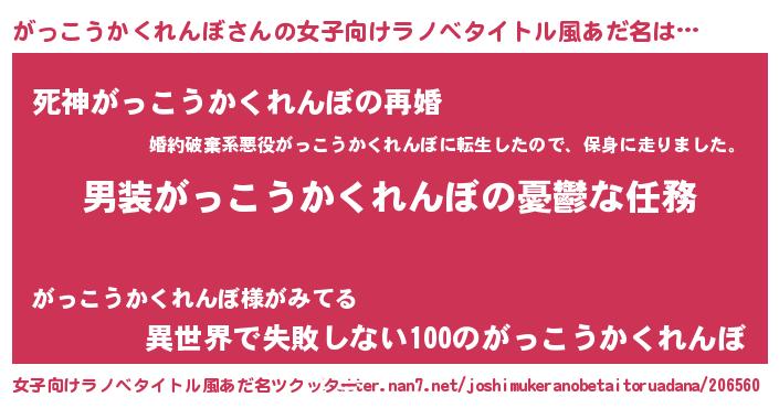 | ヘコむあだ名 | 『がっこうかくれんぼ(笑)』『がっっ子』 |