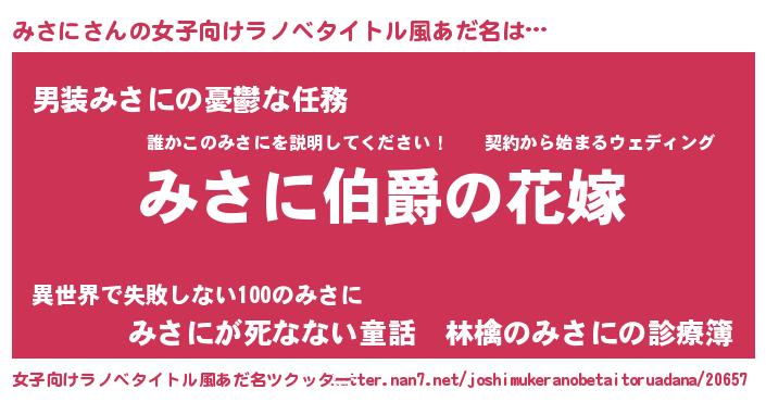 | 意味不明あだ名 | 『みさにフォーエバー』『ペロリンみさに』 |