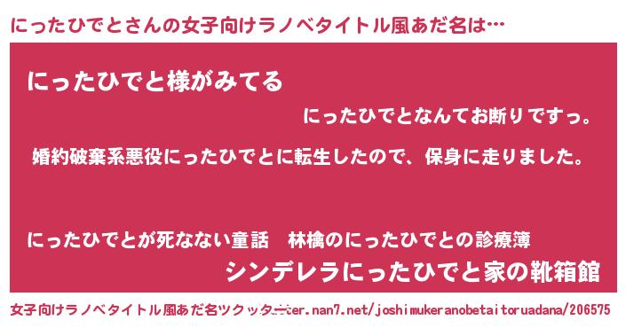| 胡散臭い通販商品みたいなあだ名 | 『信頼と実績のサプリメント…その名も「にったひでと」』 |
