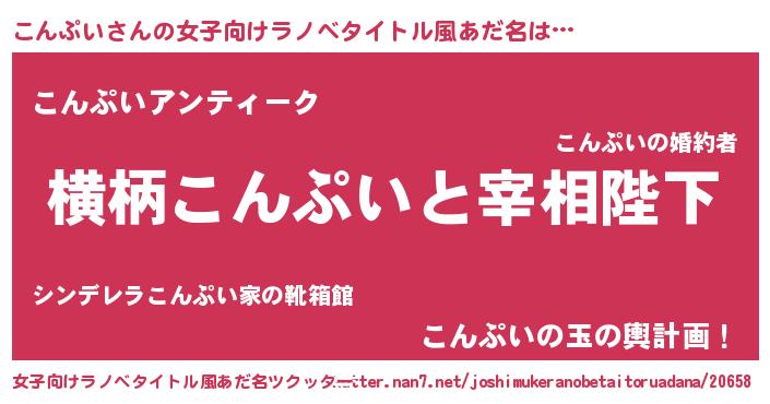| 男性向けラノベタイトル風あだ名 | 『こんぷいに滅ぼされるだけの簡単なお仕事です』 |