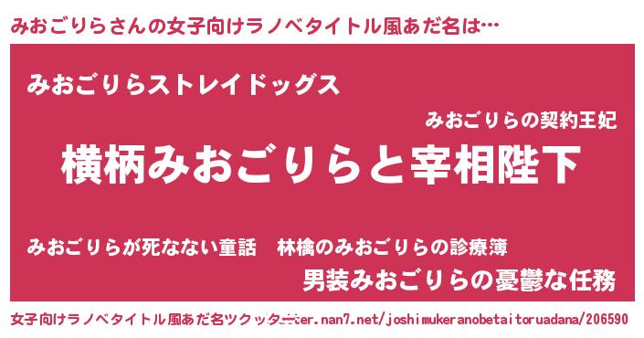 | 意味不明あだ名 | 『自称みおごりら』『永久保存みおごりら』 |