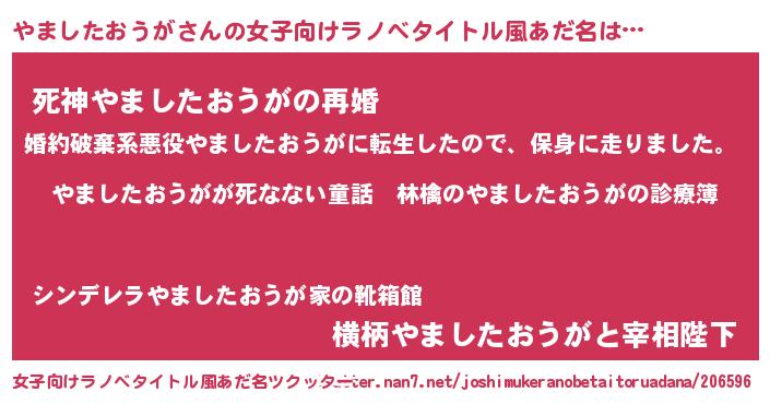 男性向けラノベタイトル風あだ名 | 『魔弾の王とやましたおうが』 |