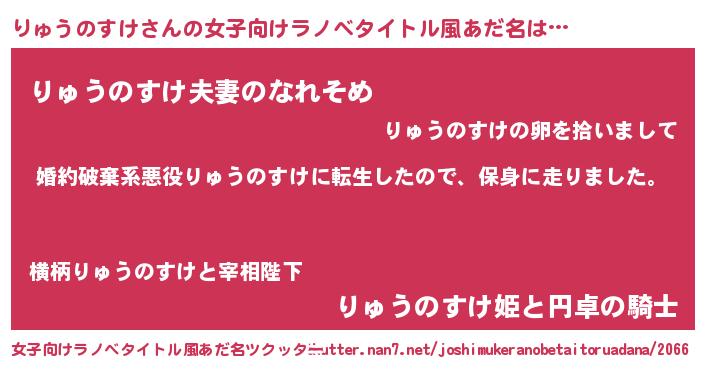 | 男性向けラノベタイトル風あだ名 | 『転生したらりゅうのすけだった件』 |