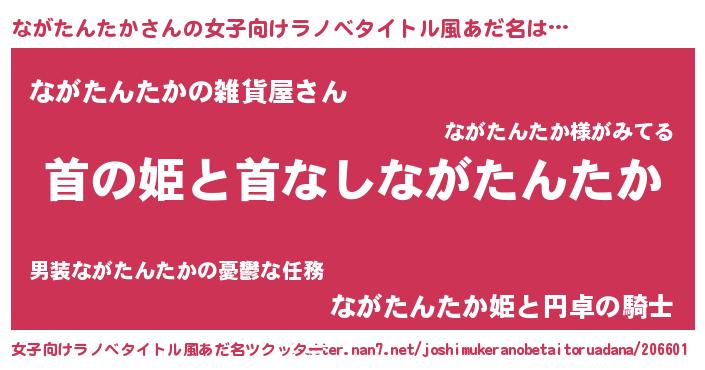 男性向けラノベタイトル風あだ名 | 『はたらくながたんたかさま!』 |