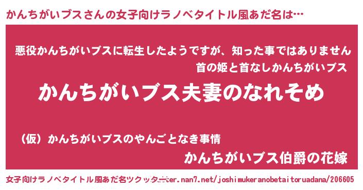 | 胡散臭い通販商品みたいなあだ名 | 『100人中100人が認めたイリジウム磁石…その名も「かんちがいブス」』 |