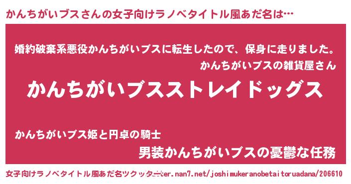 | 男性向けラノベタイトル風あだ名 | 『Re:かんちがいブスから始める異世界生活』 |