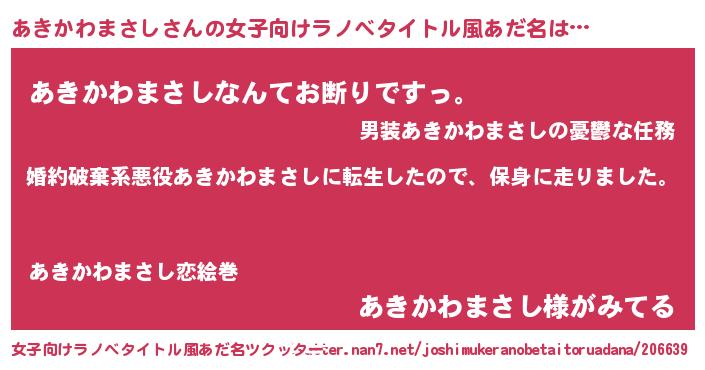 | 男性向けラノベタイトル風あだ名 | 『アキカワマサシスレイヤー』 |