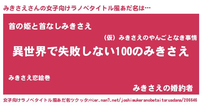 | ファンタジー風あだ名 | 『ミキディッシュ』『ミキフェル』 |