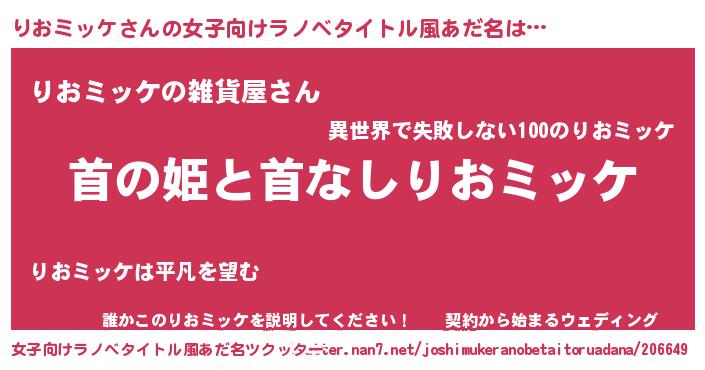 | ファンタジー風あだ名 | 『エターナルリオミッケー』『リオフェル』 |