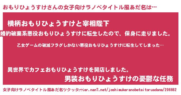 | 胡散臭い通販商品みたいなあだ名 | 『世界中を虜にした100年もののヴィンテージワイン…その名も「おもりひょうすけ」』 |