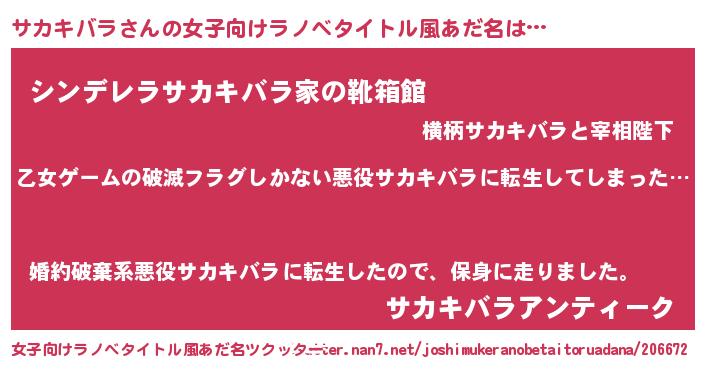 | 胡散臭い通販商品みたいなあだ名 | 『世界中を虜にした100年もののヴィンテージワイン…その名も「サカキバラ」』 |