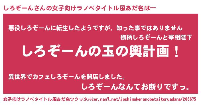 | 男性向けラノベタイトル風あだ名 | 『転生したらしろぞーんだった件』 |