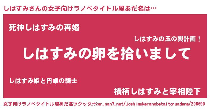 | ピコ太郎風あだ名 | 『シハ四郎』『シシ太郎』『シコ三郎』 |