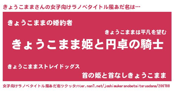 | 胡散臭い通販商品みたいなあだ名 | 『モテモテ間違いなし水晶球…その名も「きょうこまま」』 |