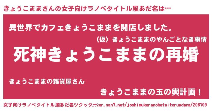 | 男性向けラノベタイトル風あだ名 | 『ノーゲーム・ノーキョウコママ』 |