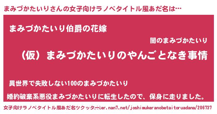 | 男性向けラノベタイトル風あだ名 | 『まみづかたいりの憂鬱』 |