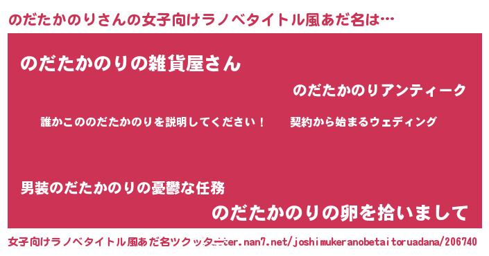 | 男性向けラノベタイトル風あだ名 | 『ノダタカノリアートオンライン』 |