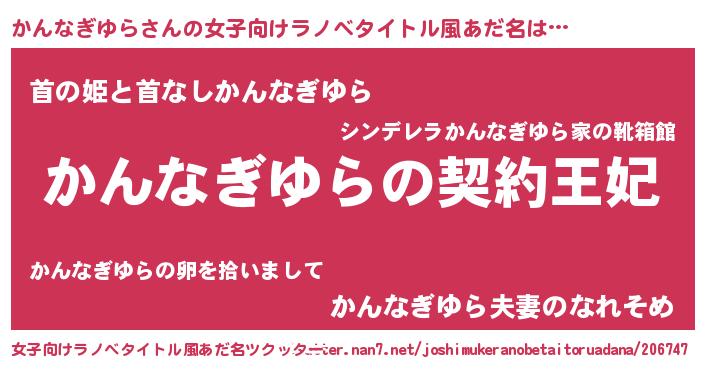 | 男性向けラノベタイトル風あだ名 | 『かんなぎゆらという概念が存在しない退屈な世界 』 |