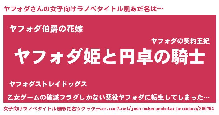 | 胡散臭い通販商品みたいなあだ名 | 『モテモテ間違いなしブレスレット…その名も「ヤフォダ」』 |